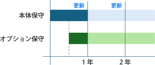 - 本体をご購入後、しばらくして新たにオプションを追加購入した場合、そのオプションに付帯する保守期間は、本体の保守満了日までとさせていただきます。