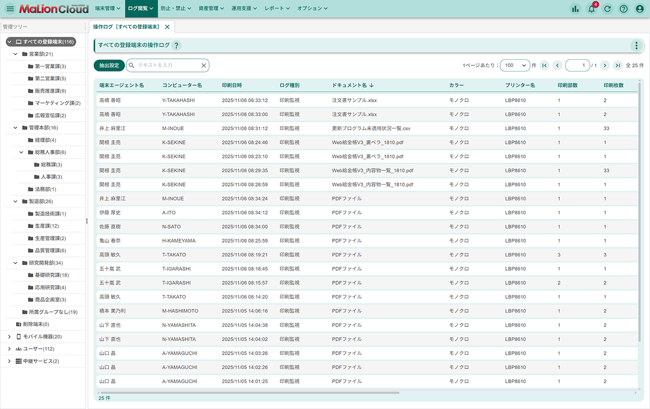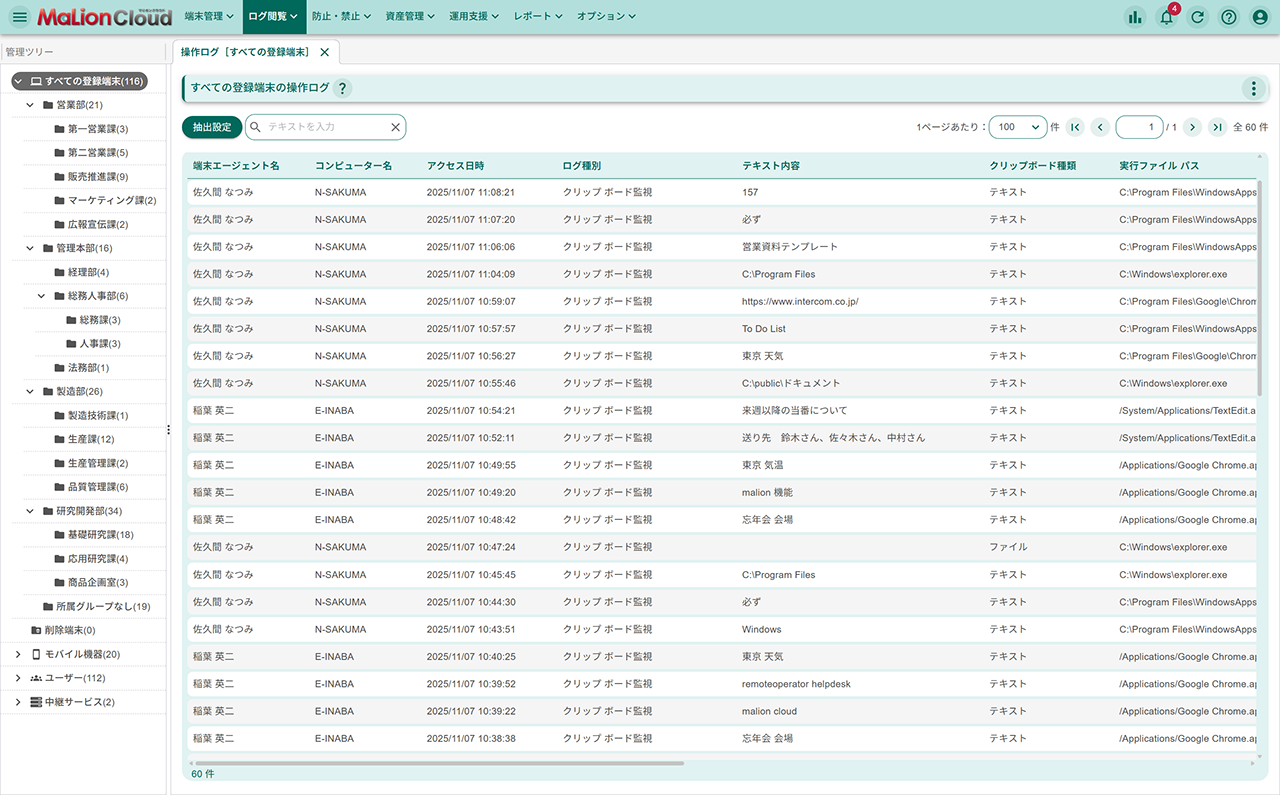 - クライアントPCの操作を根こそぎ管理して、情報漏洩を防止。