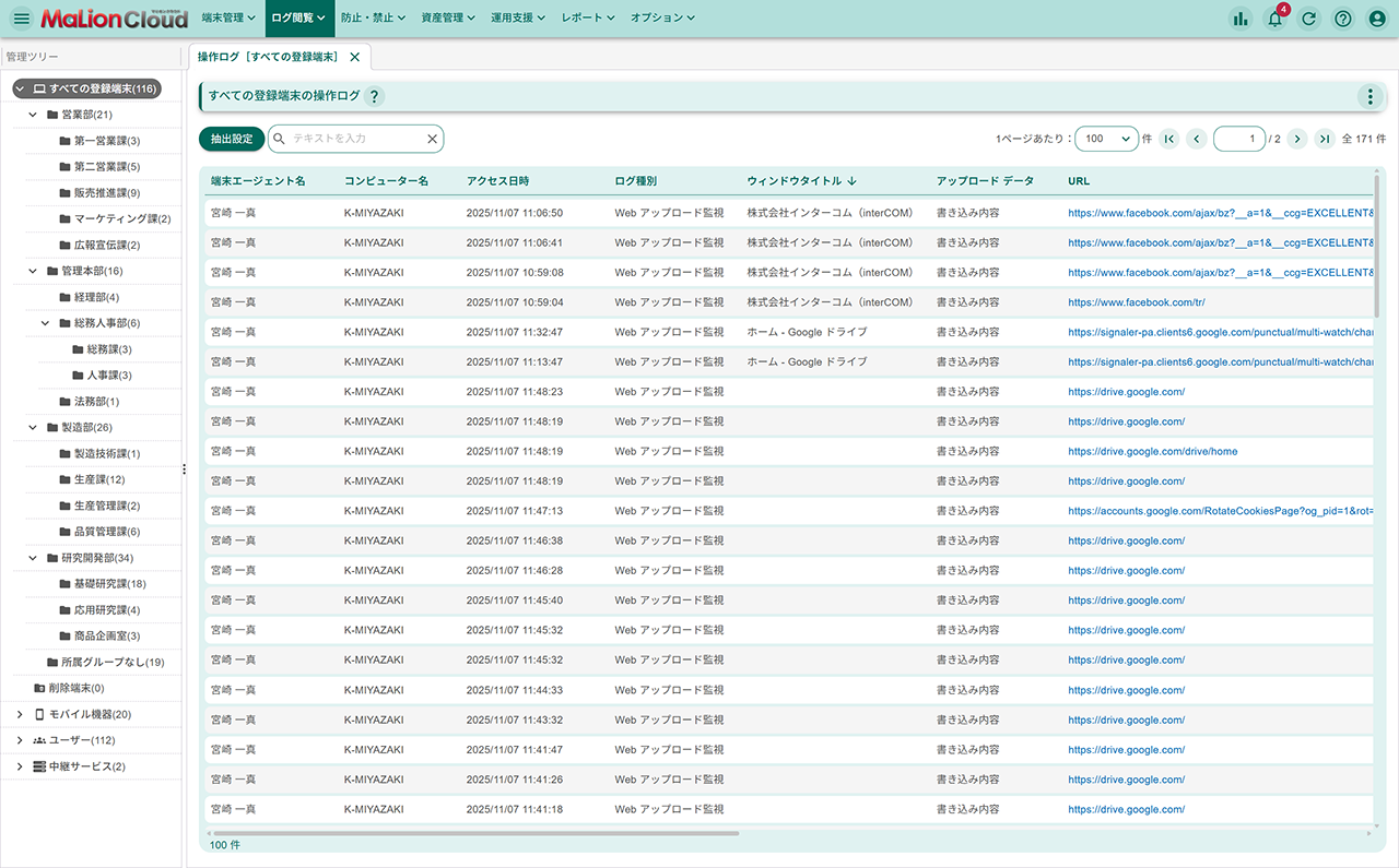 ※一部の環境において、Webアップロードログを収集できない場合があります。