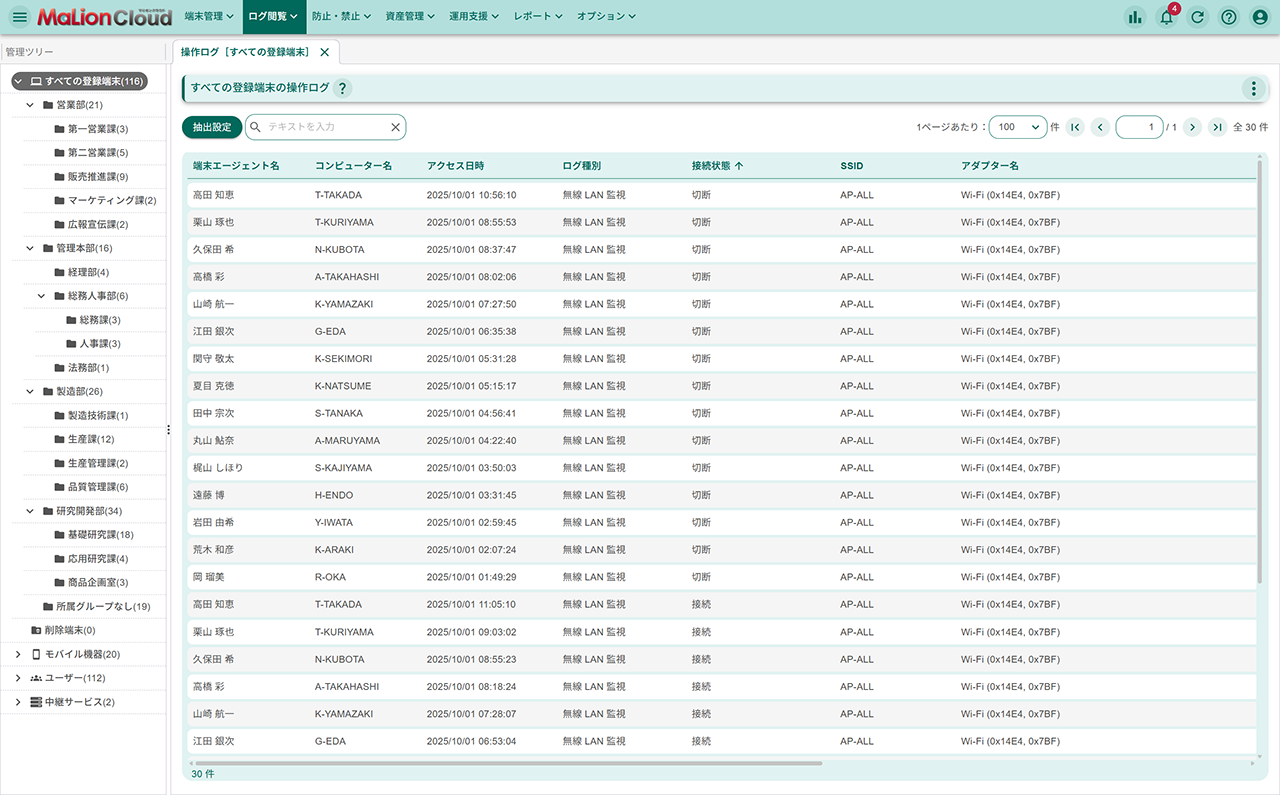 オフライン端末操作監視