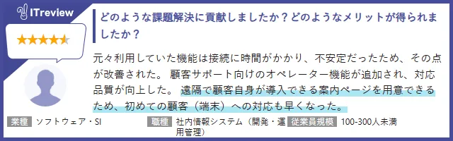 レビュー・比較サイトの「ITreview」へ、お客様からレビューをいただいております。