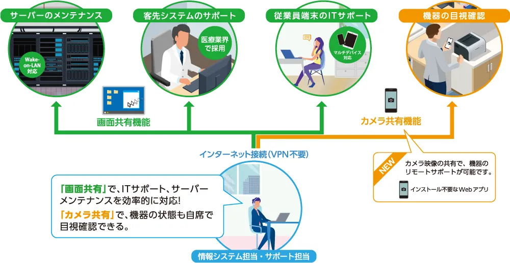 特に、不特定多数のデバイスに接続できる有人アクセスと常時接続できる無人アクセスの両方に対応しているため、より幅広い用途で業務効率化やトラブルの迅速解決を実現します。