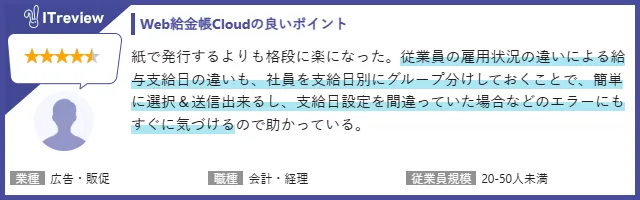 口コミサイト「ITreview」にて実際に導入したお客様からいただいた評価