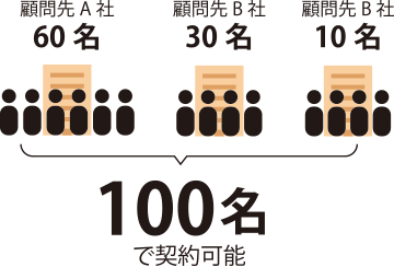 会計事務所の者ですが、顧問先A社は60名、顧問先B社は40名を管理している場合は、何名で契約になりますか?